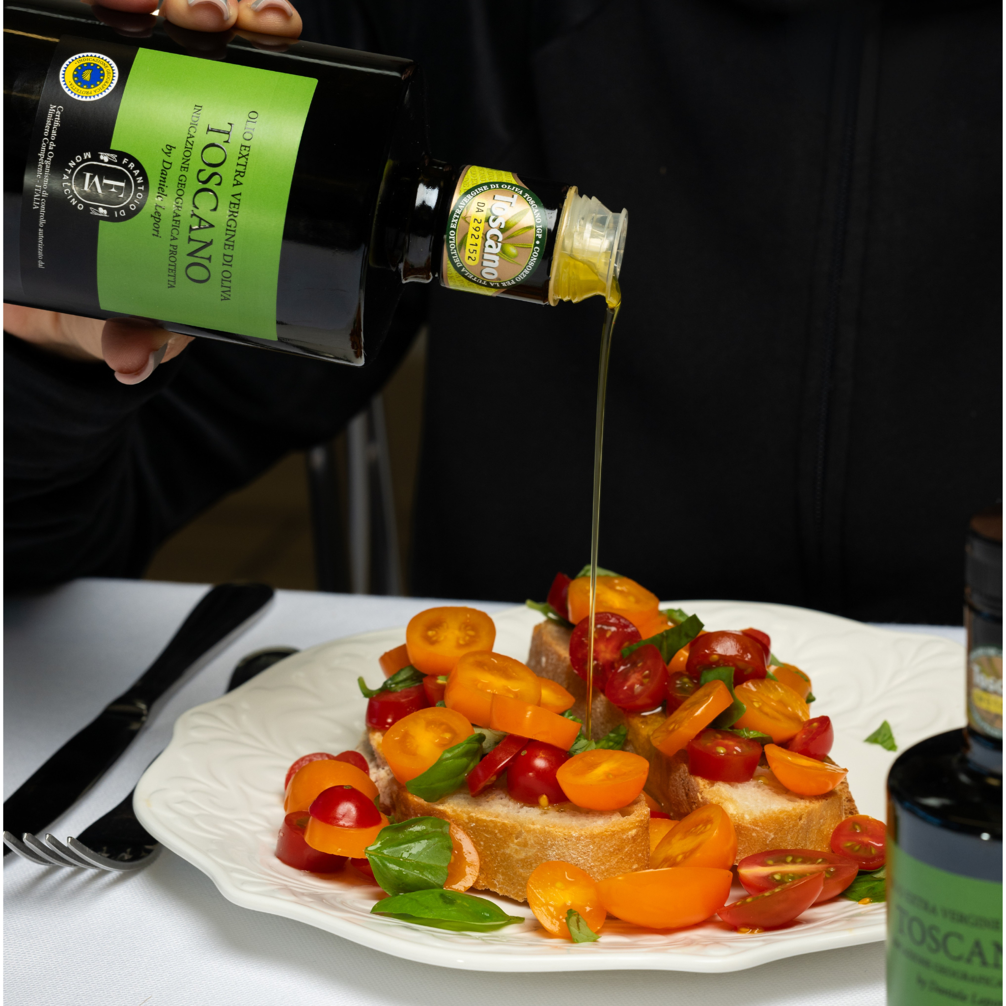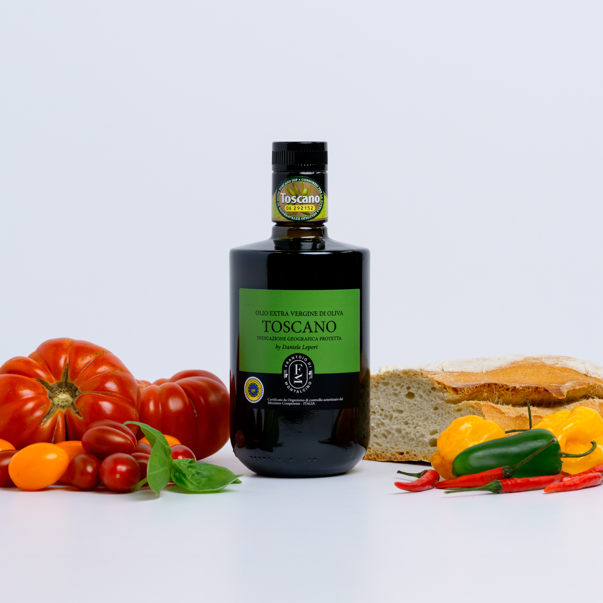 Toscano IGP by Daniele Lepori is a high-polyphenol, 100% Tuscan Extra Virgin Olive Oil—an authentic expression of the region’s agricultural excellence. Produced exclusively from olives grown, harvested, and milled in Tuscany, it fully complies with the rigorous standards established by the Consortium for the Protection of Toscano IGP Extra Virgin Olive Oil.